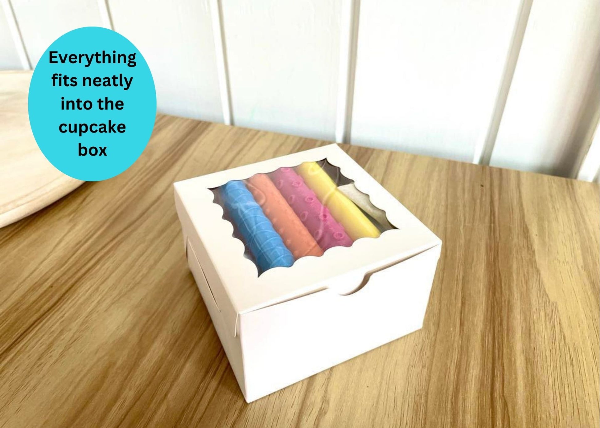 Cupcake size- approx. 5.5cm wide by approx. 5cm tall