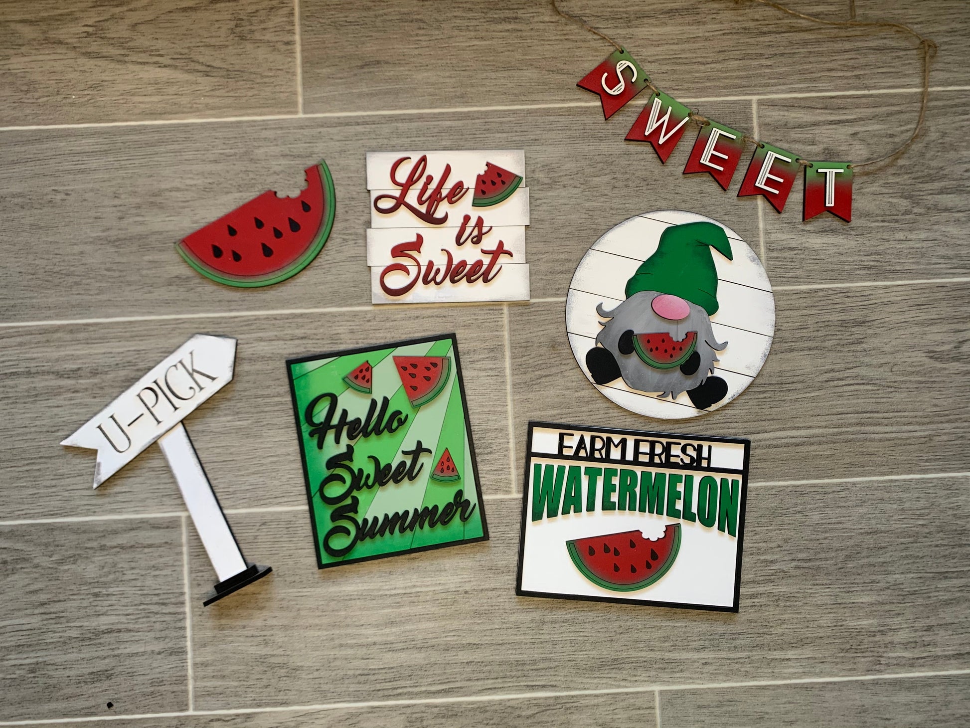 DIY Watermelon Gnome Tiered Tray or Shelf Decor Kit