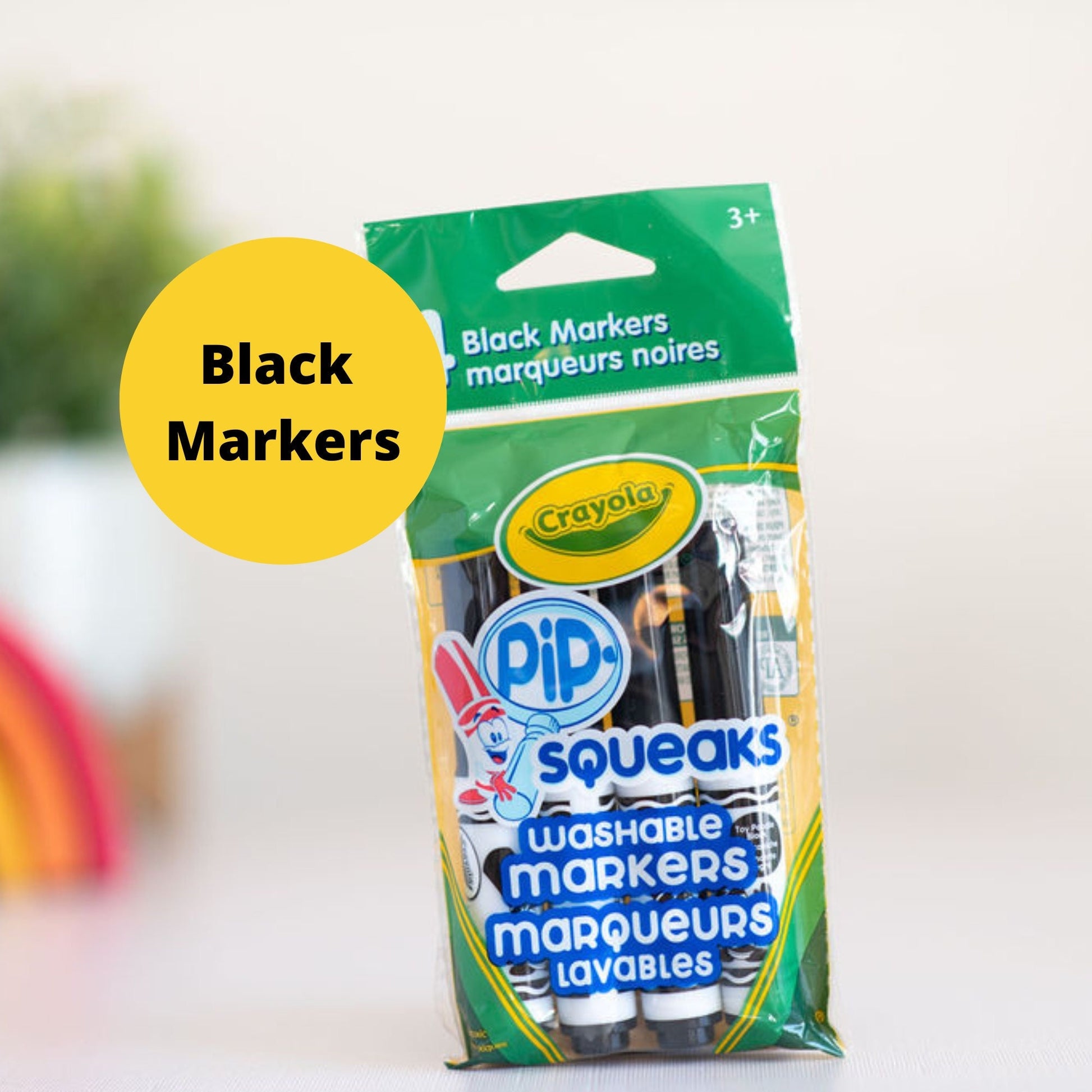 Pip-Squeaks Markers are small in size, but BIG in color! The easy-to-hold short barrels of these mini markers are scaled to match little hands and the ink is our special washable formula. Since Crayola washable markers are trusted to wash from skin and clothing, kids can happily color anytime, anywhere. Whether your kids are taking a long road trip or heading over to grandma’s house for the day, the compact size of Pip-Squeaks Skinnies makes them the perfect kids’ markers for travel.
