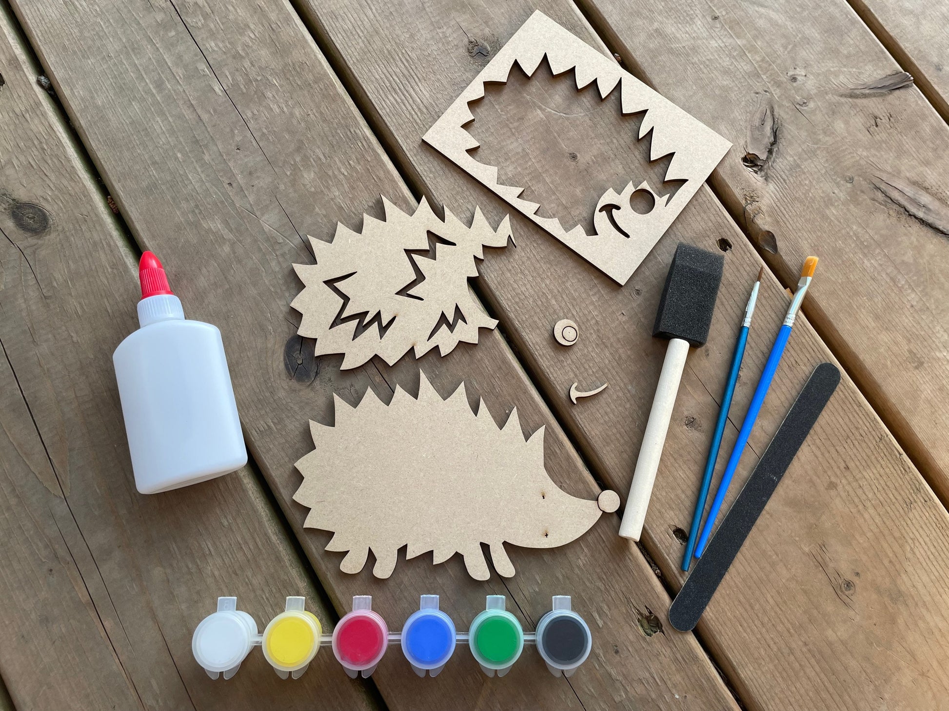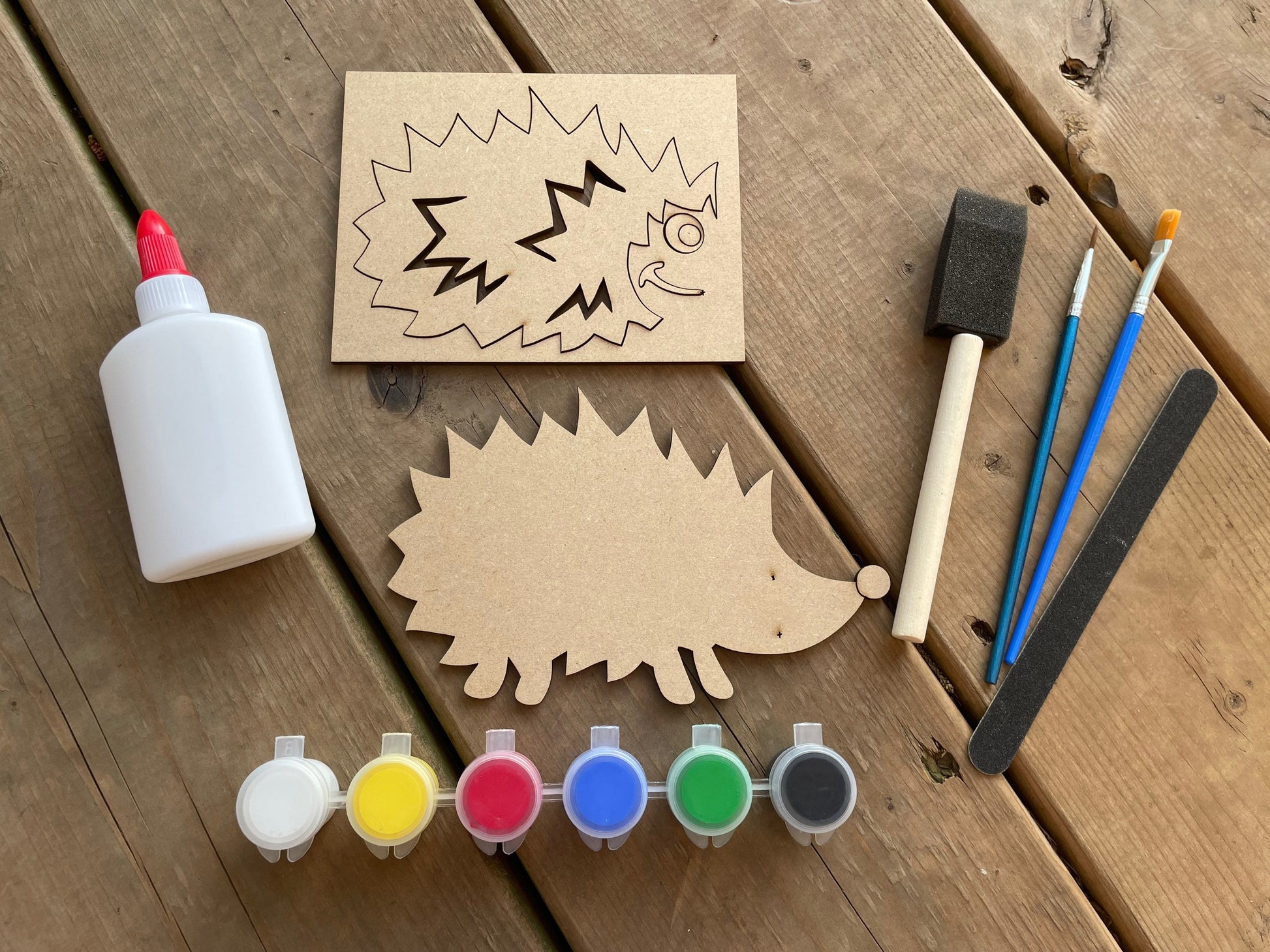 ⨠Fun and crafty wooden laser cut shapes with everything you need in a box! This is a sweet little hedgehog set!