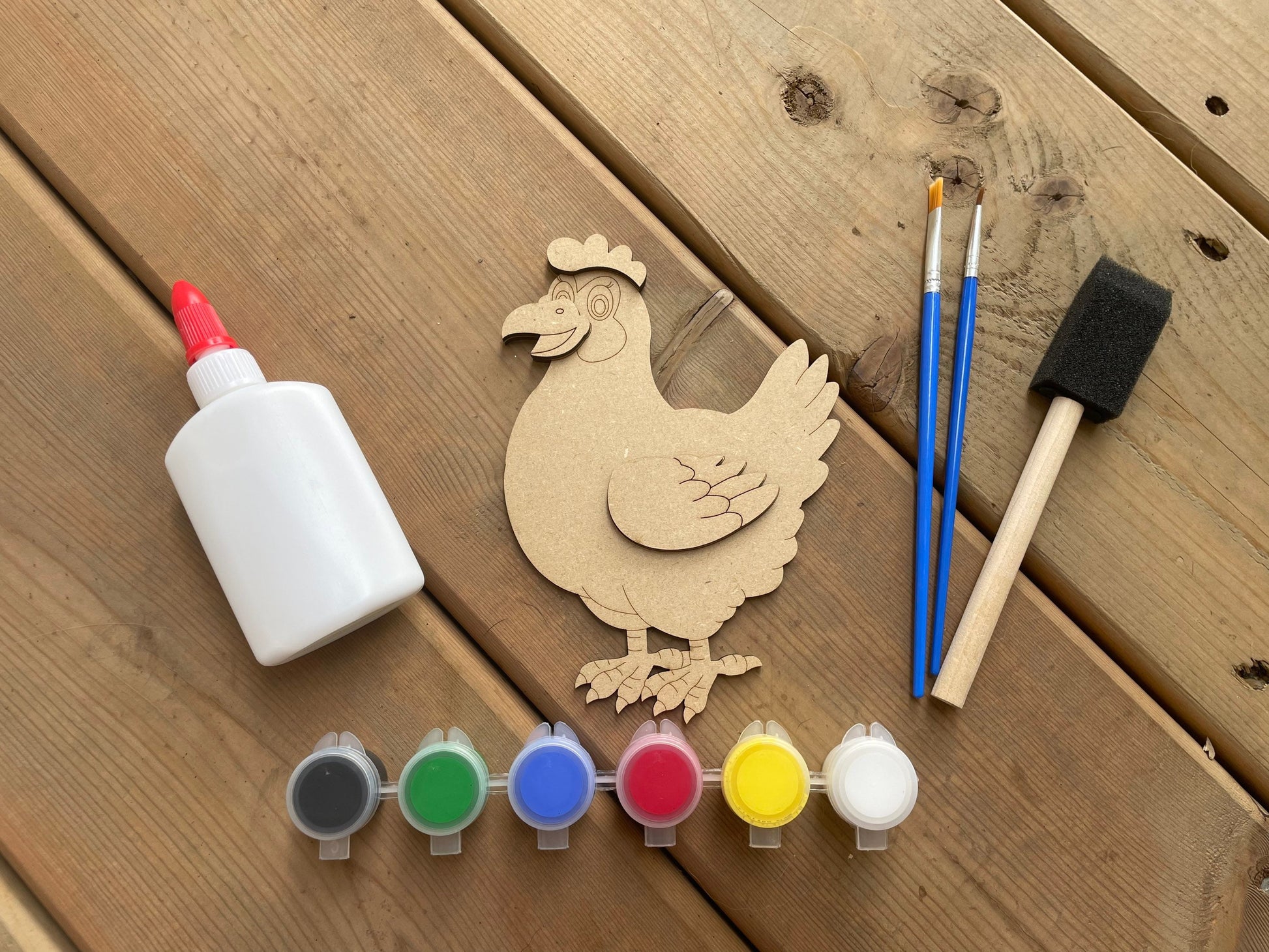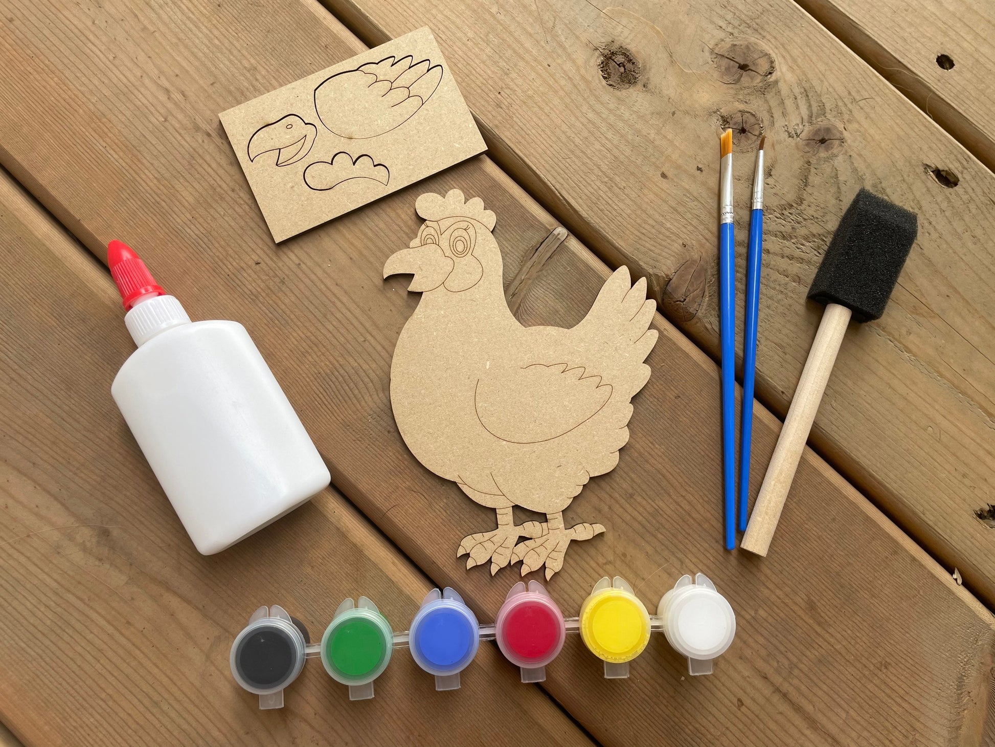 ⨠Fun and crafty wooden laser cut shapes with everything you need in a box! This is a sweet little hen set!