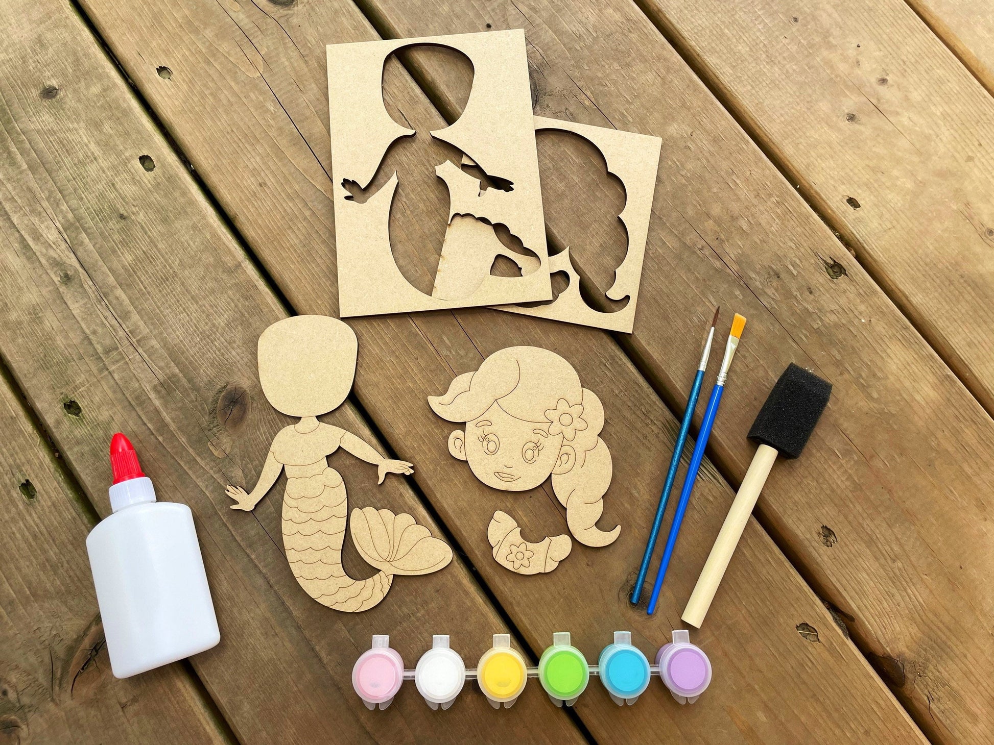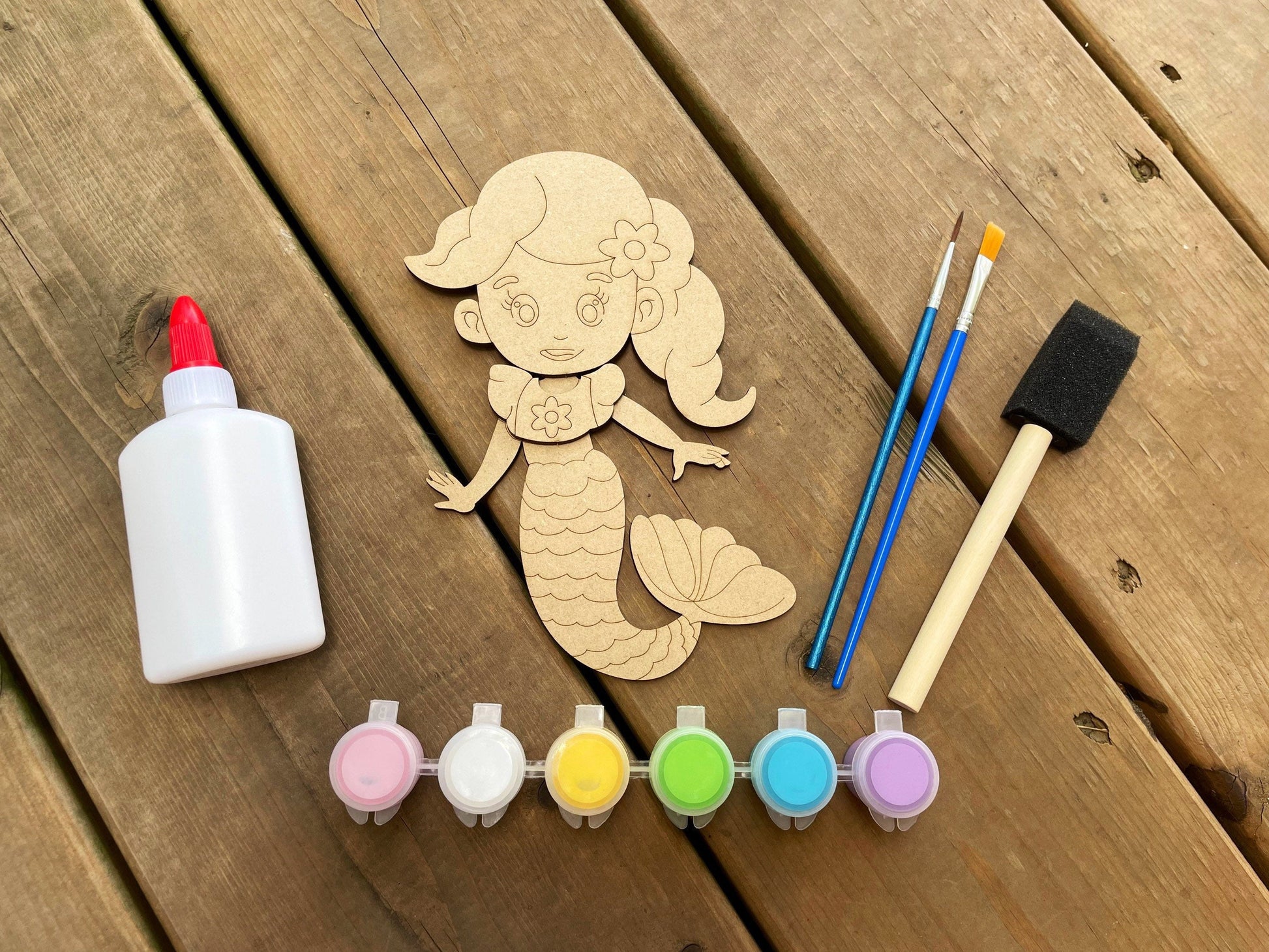 ⨠Fun and crafty wooden laser cut shapes with everything you need in a box! This is a sweet little mermaid set!