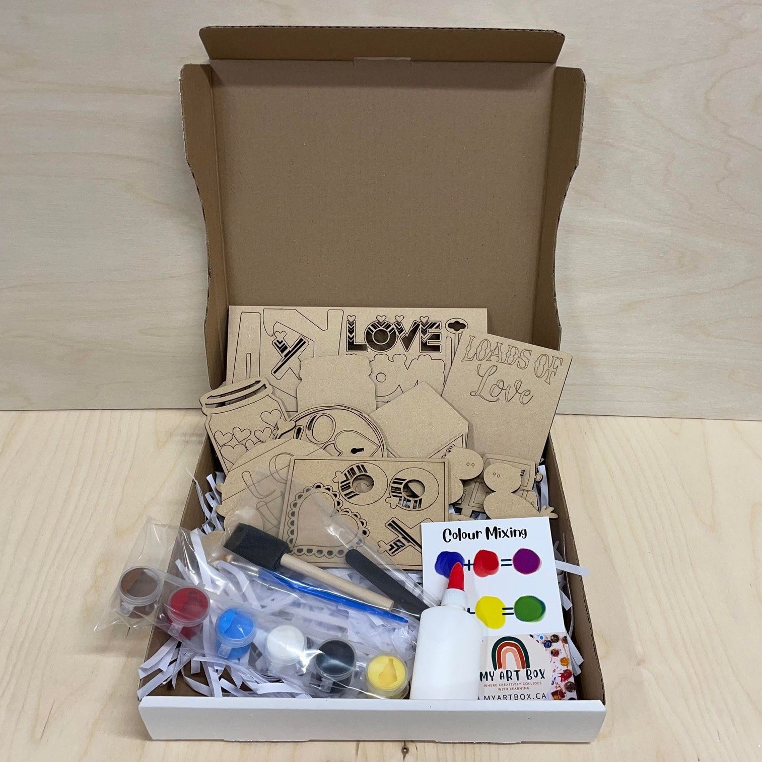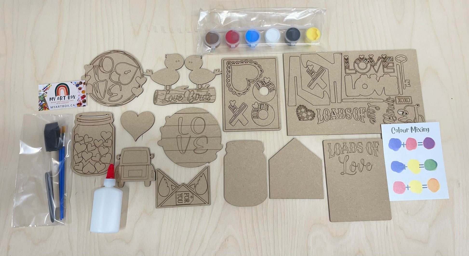 Have a great time painting this sweet Valentine's Day kit that you can display as part of your decor. Display it on a shelf or in a tiered tray!