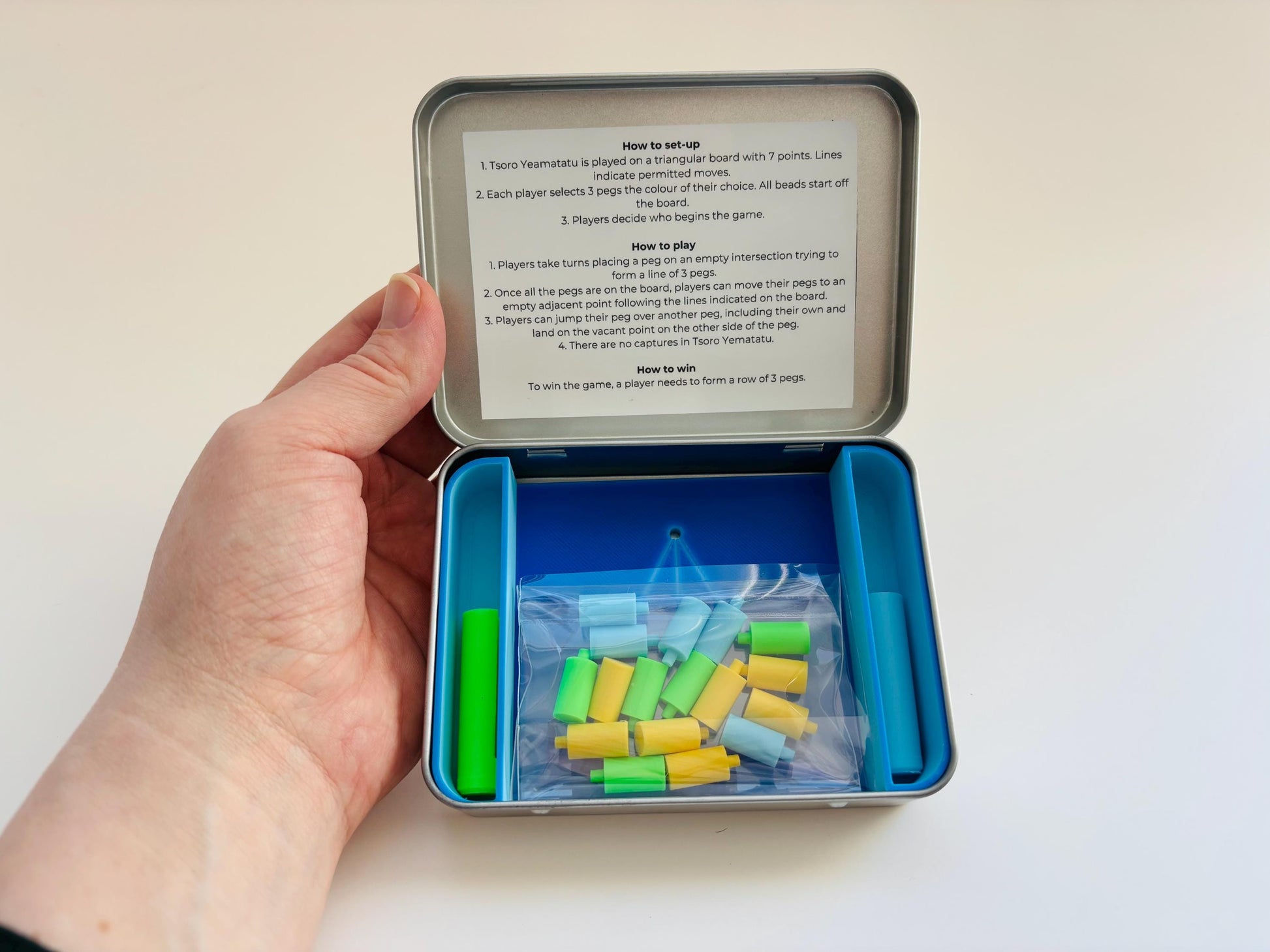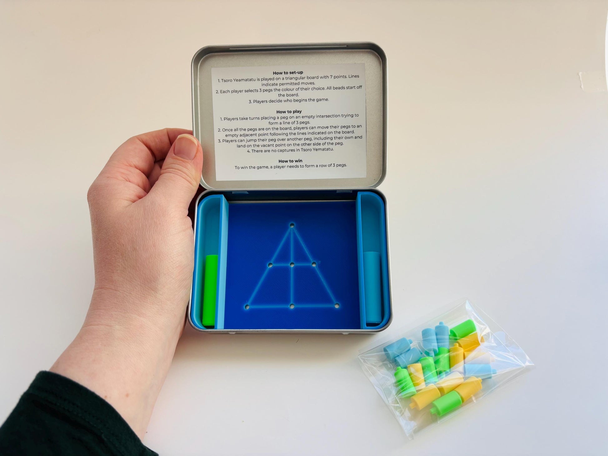 🔹 Game Pieces – Two sets of pegs (three per player) for strategic play.