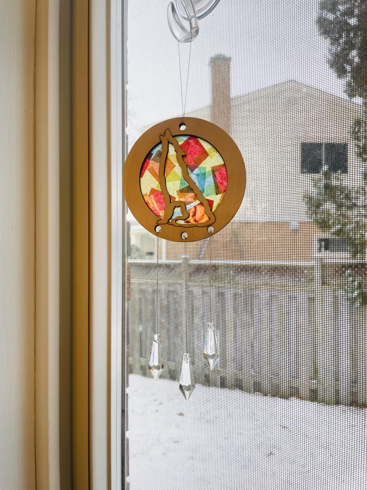 Hang your completed suncatcher in a sunny window. Watch as it transforms the natural light into a breathtaking display of colors and shadows.